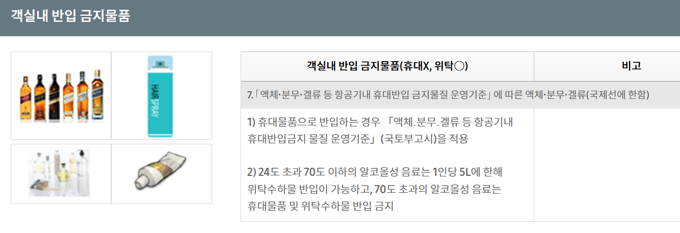 - 기내 반입 가능 품목: