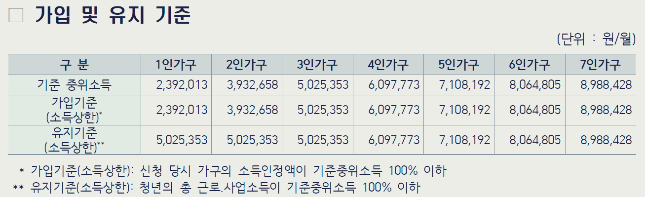 ※ 가구는 청년이 속한 주민등록상 세대 전체의 합산 소득을 기준으로 계산합니다.