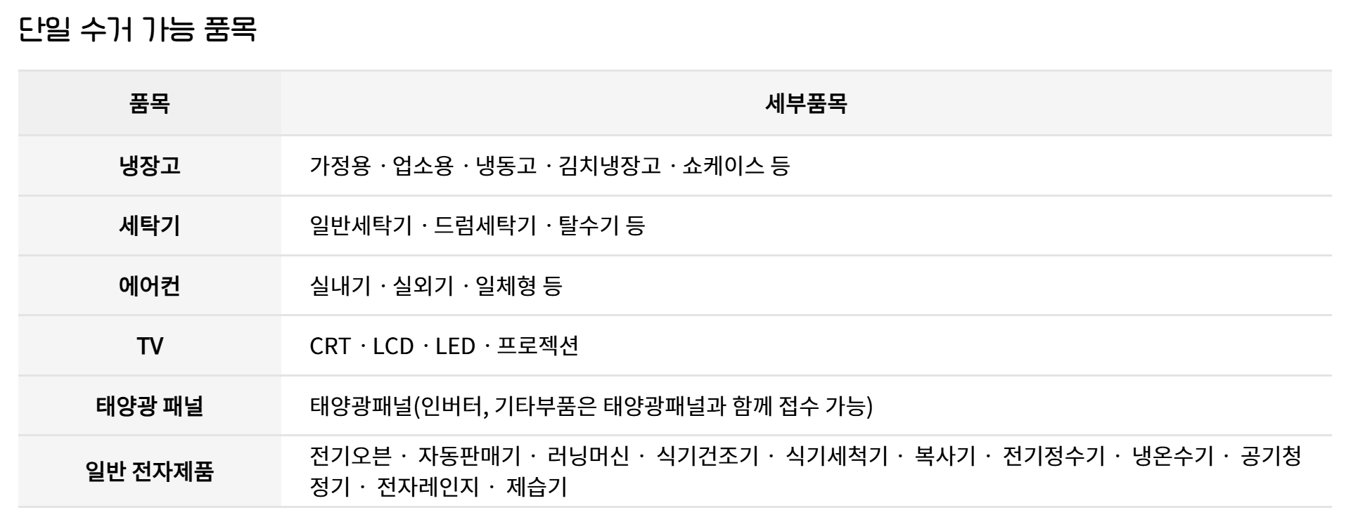 2.1 폐가전제품 무상 방문 수거 서비스 신청대상